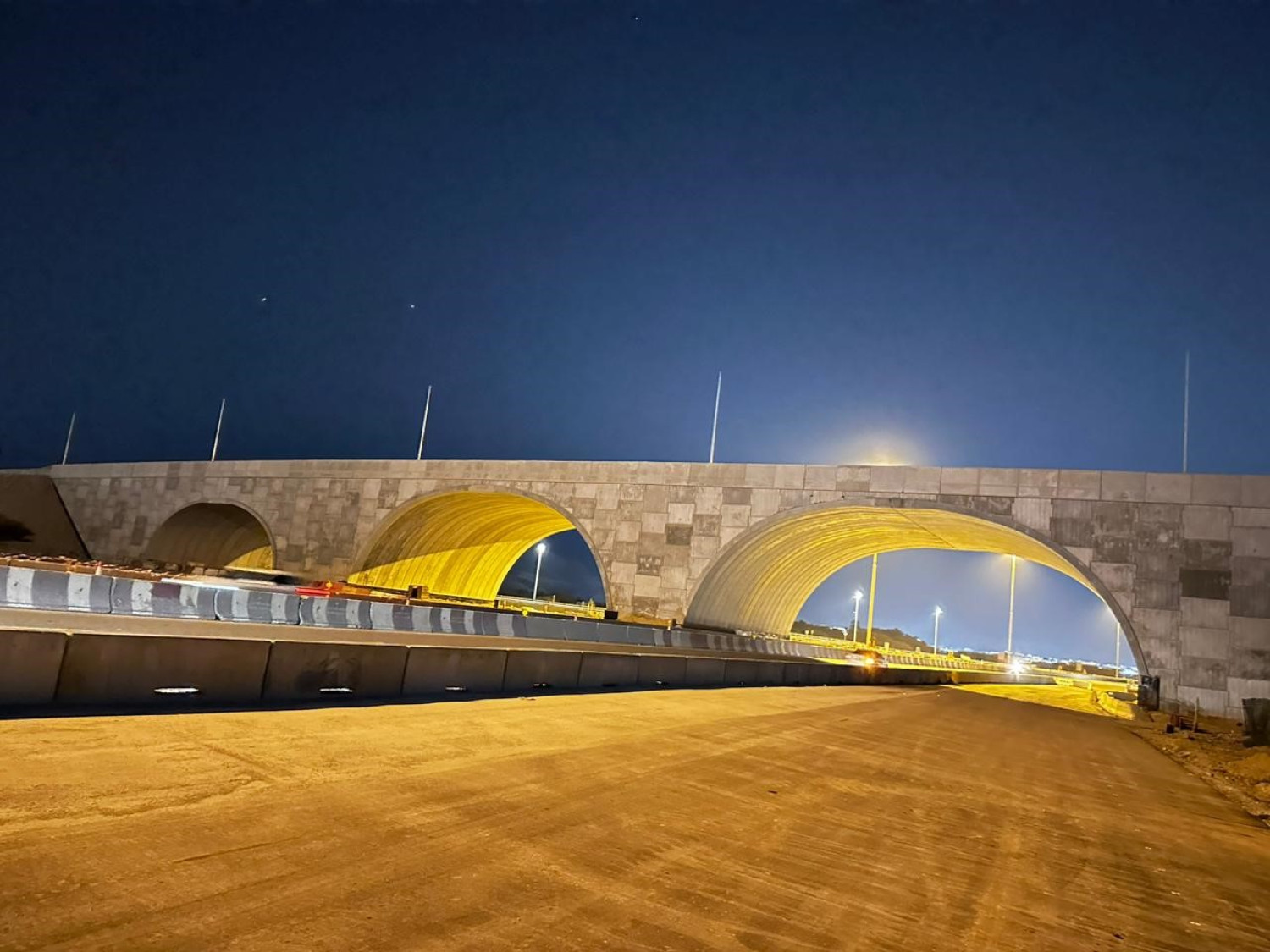 In collaboration with our local partner, VSL, we have recently completed a BEBO triple-span arch bridge over the Emirates Road E611. This bridge serves as a connector to the new road leading from the northern shore into the mountains.